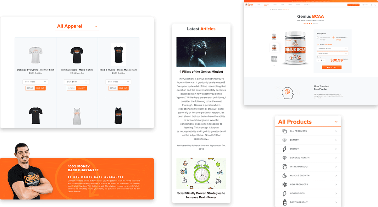 The Genius Brand (also known as supplements master) is one of the leading supplement providers with a wide range of products. We’re proud to be chosen to support their online business. Our work here covers everything from mobile and desktop design to custom Shopify theme development.