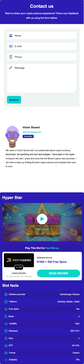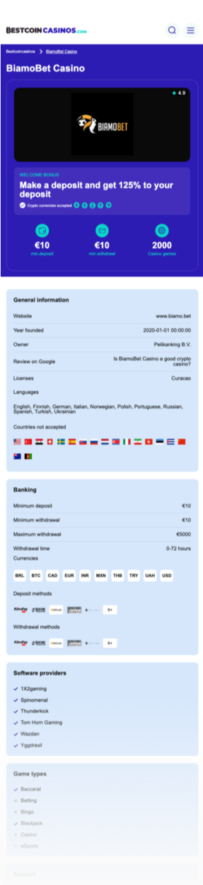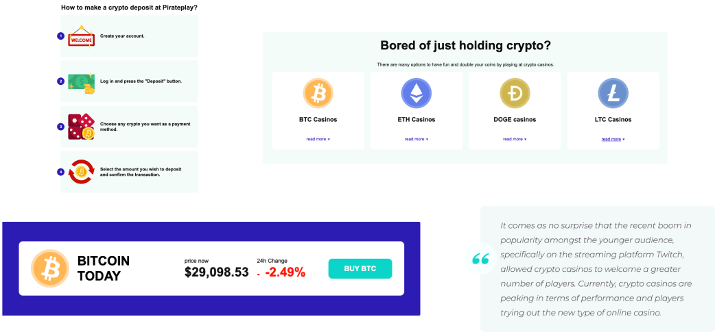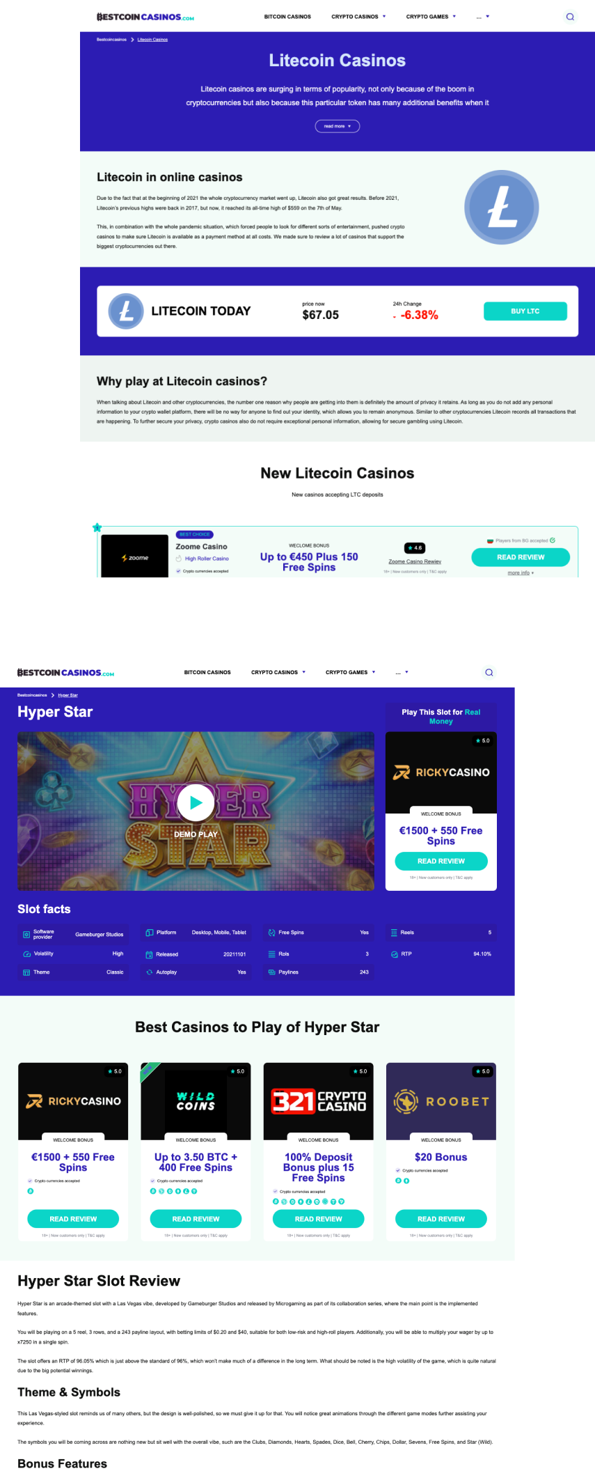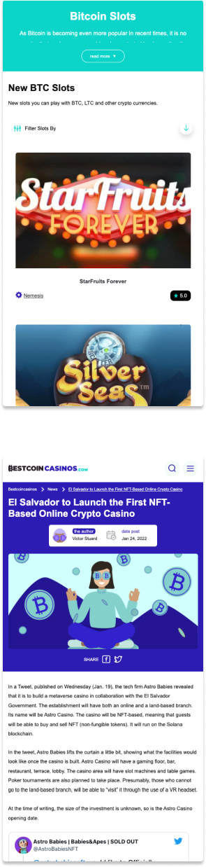 Bestcoincasinos.com is another cyrpto-casino comparison website that we were hired to build in 2021. Over there you can compare different casinos, based on the crypto’s you hold and you can also find up-to-date exchange rates of the top 20 crypto currencies.