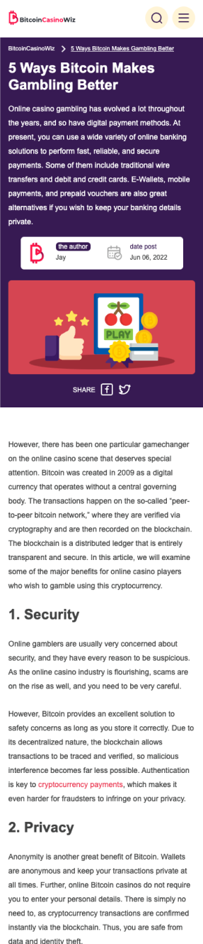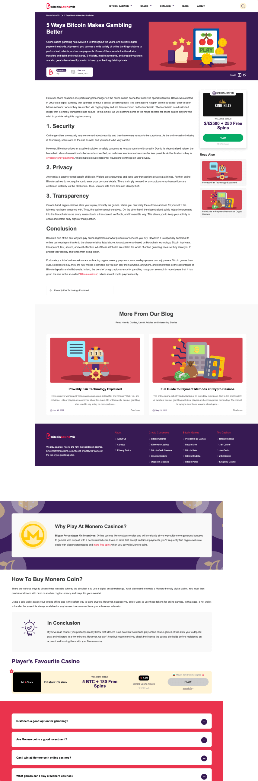 Design & Development of crypto-casino affiliate website - BitcoinCasinoWiz.com