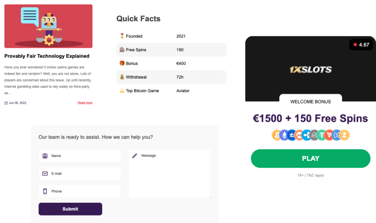 As you can spot from the brand name, the site is dedicated to review bitcoin casinos, crypto games and everything around the crypto-iGaming industry.