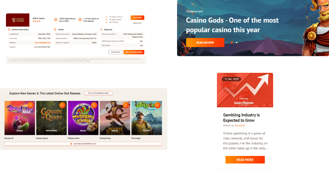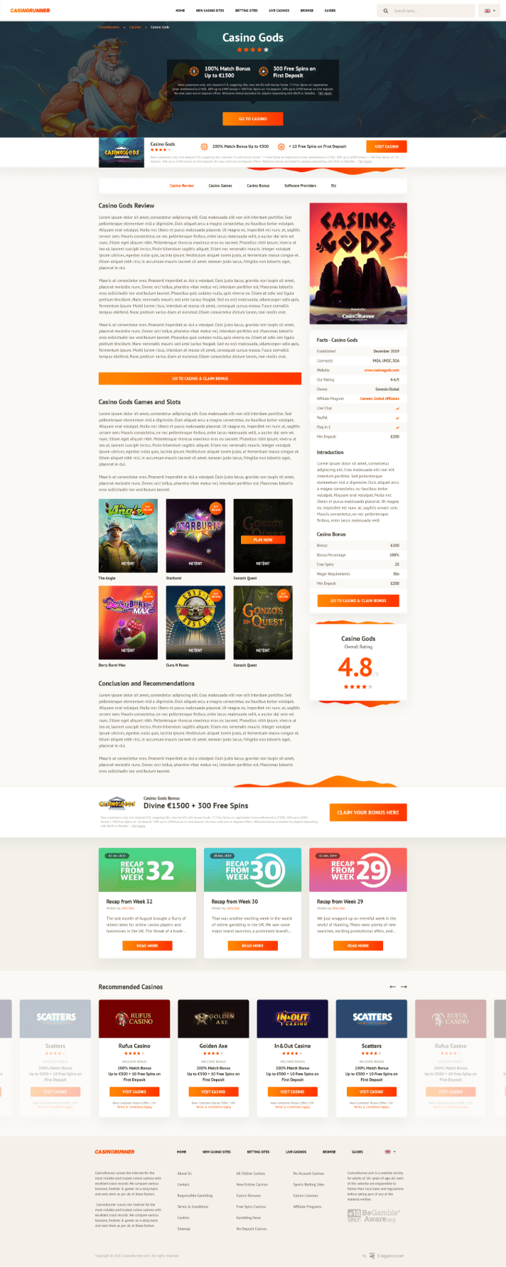 E-legance team was hired to redesign & create casino affiliate cms for CasinoRunner.com. We had to bring fresh new look, faster load time and modern, iGaming-functional wordpress theme for this site. Another goal for this project was to create a new logo fro the brand.