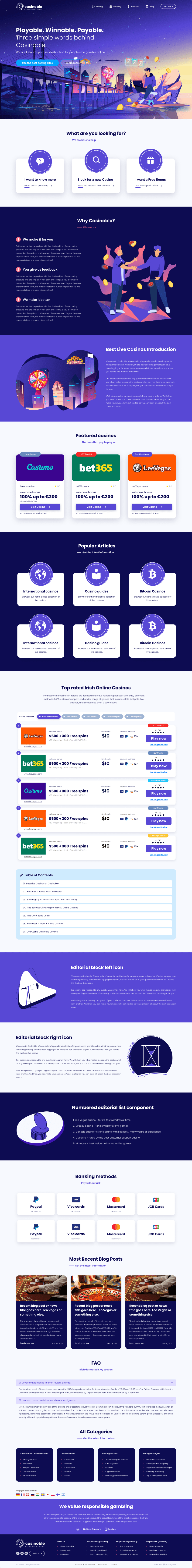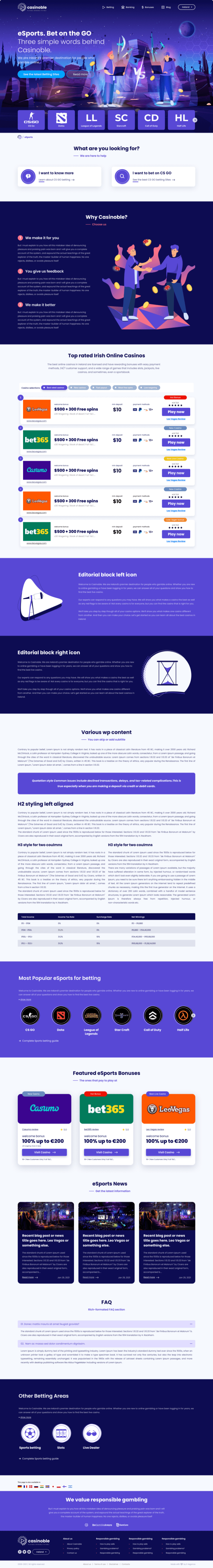 Our team was hired to redesign and bring Casinoble.ie to 2021 trends. Casinoble.ie is a casino review site that is aiming to give detailed and complete information about online casinos, betting sites, tips and tricks to the Irish players.