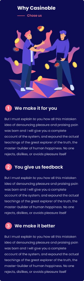 As you will see Casinoble is outstanding with it’s custom WordPress theme and more than 200 custom, hand-drawn illustrations that we were asked to make for it’s unique vision.