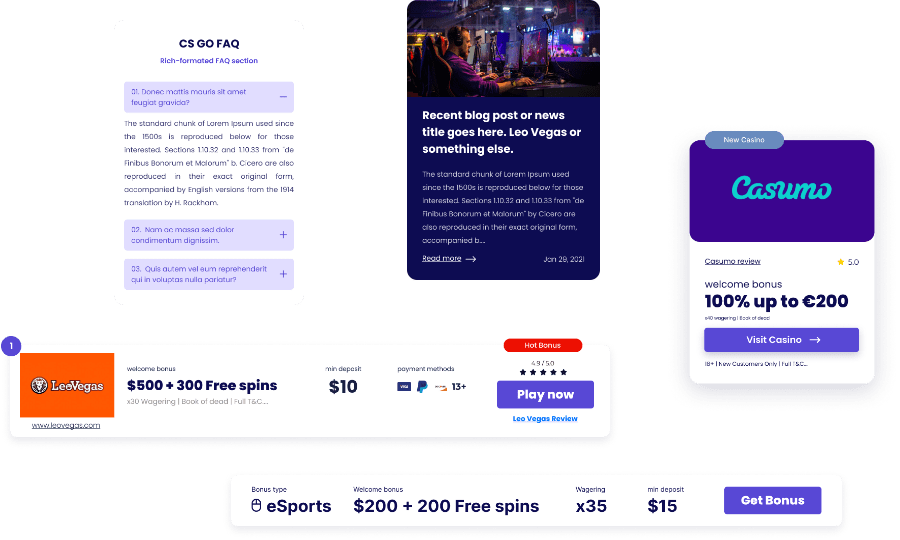 Design, illustrations and Wordpress theme development for Casino affiliate website.