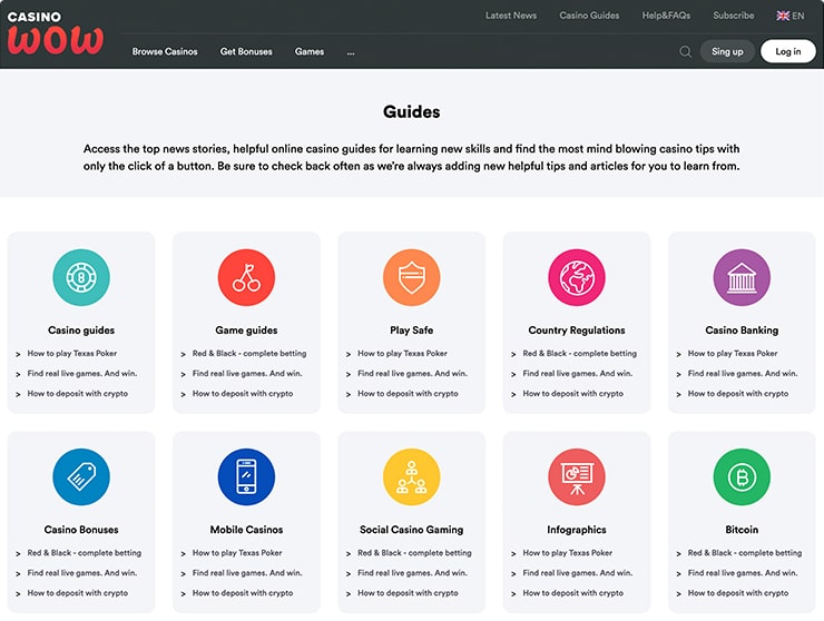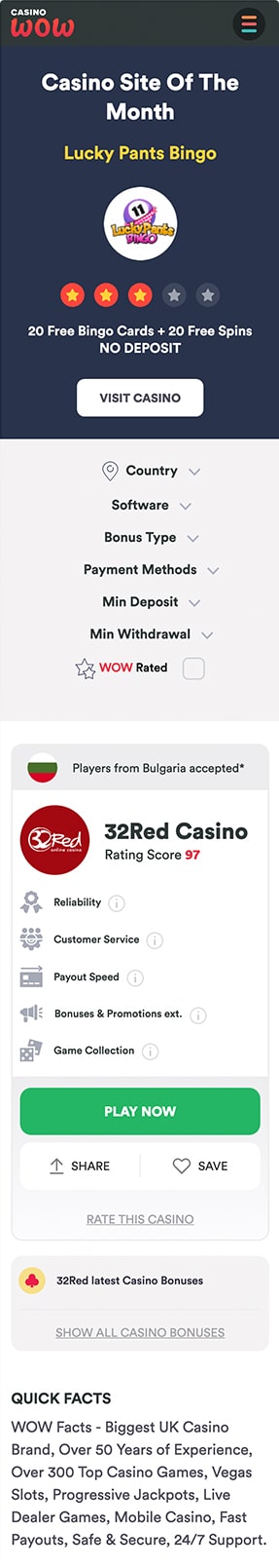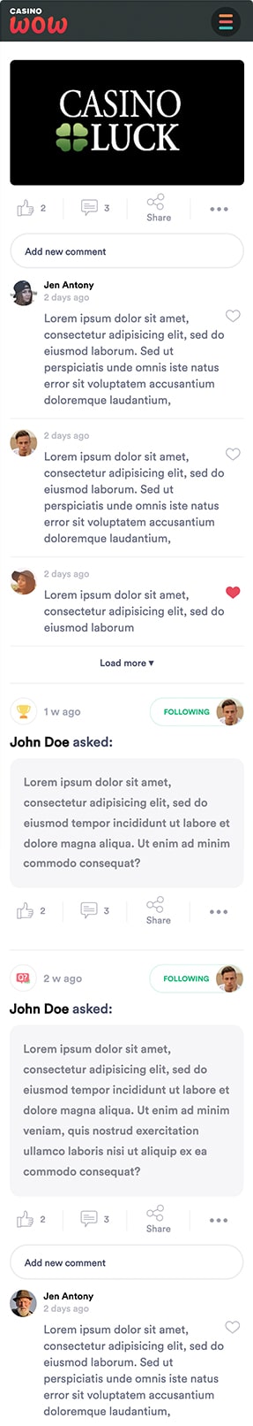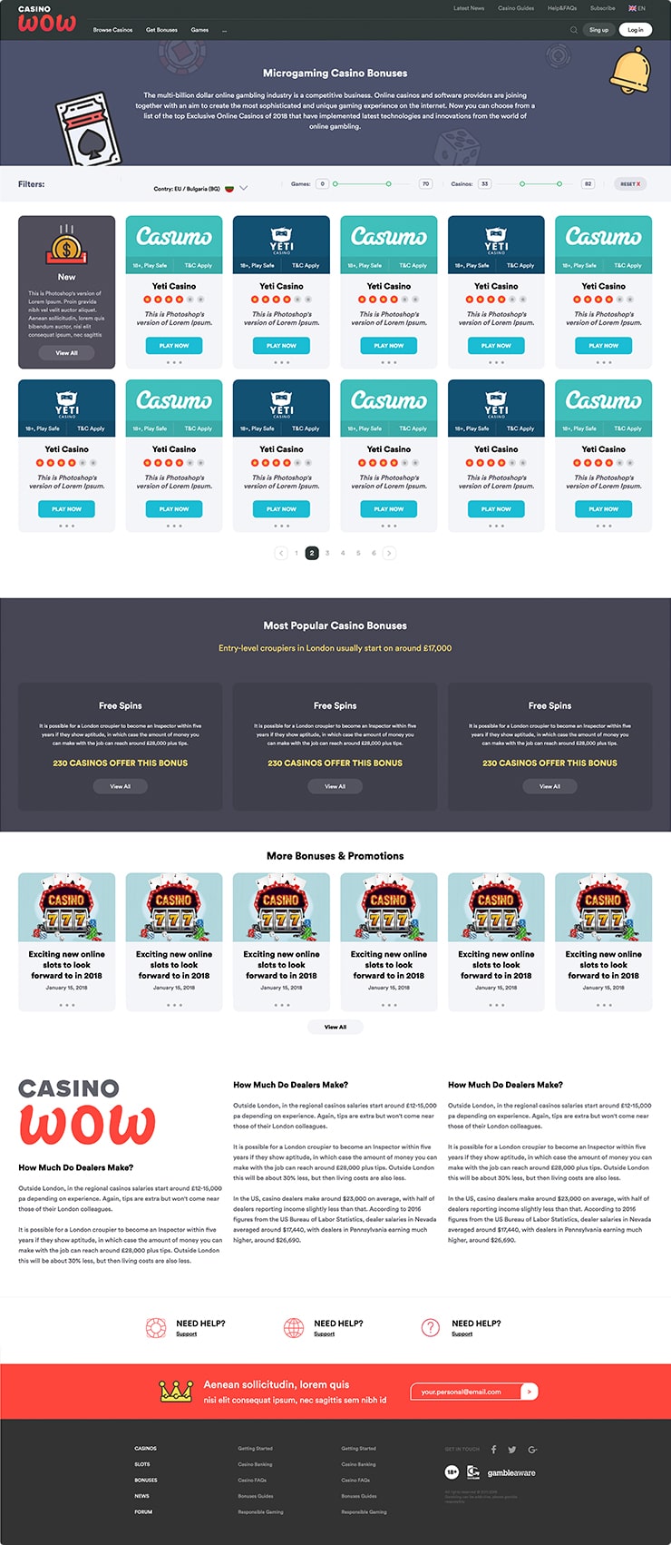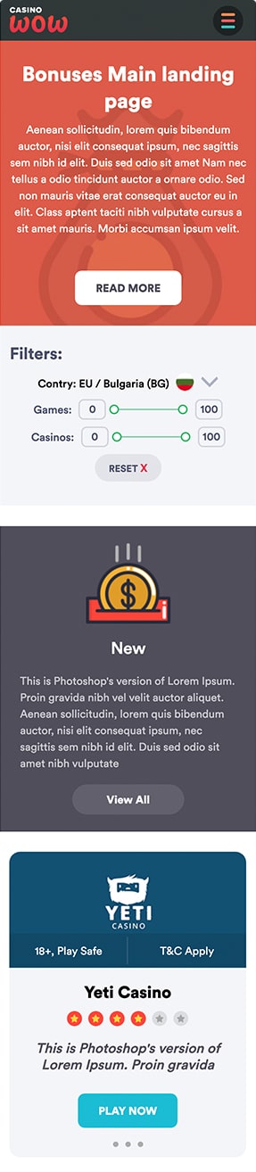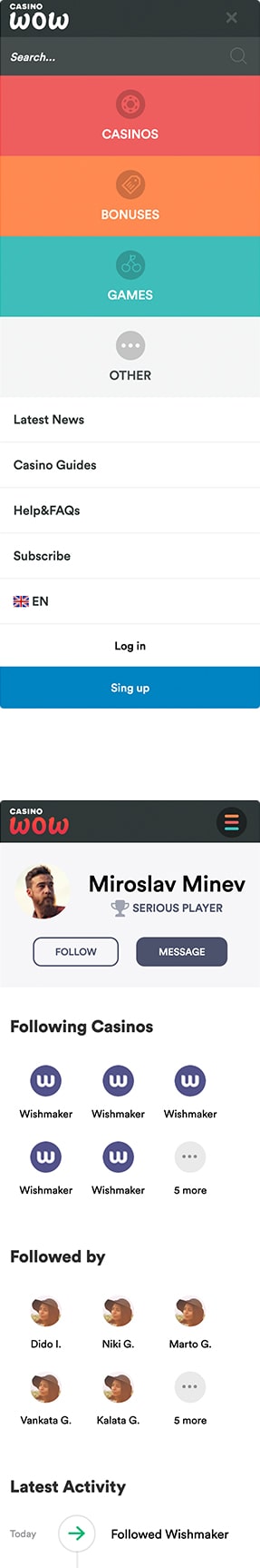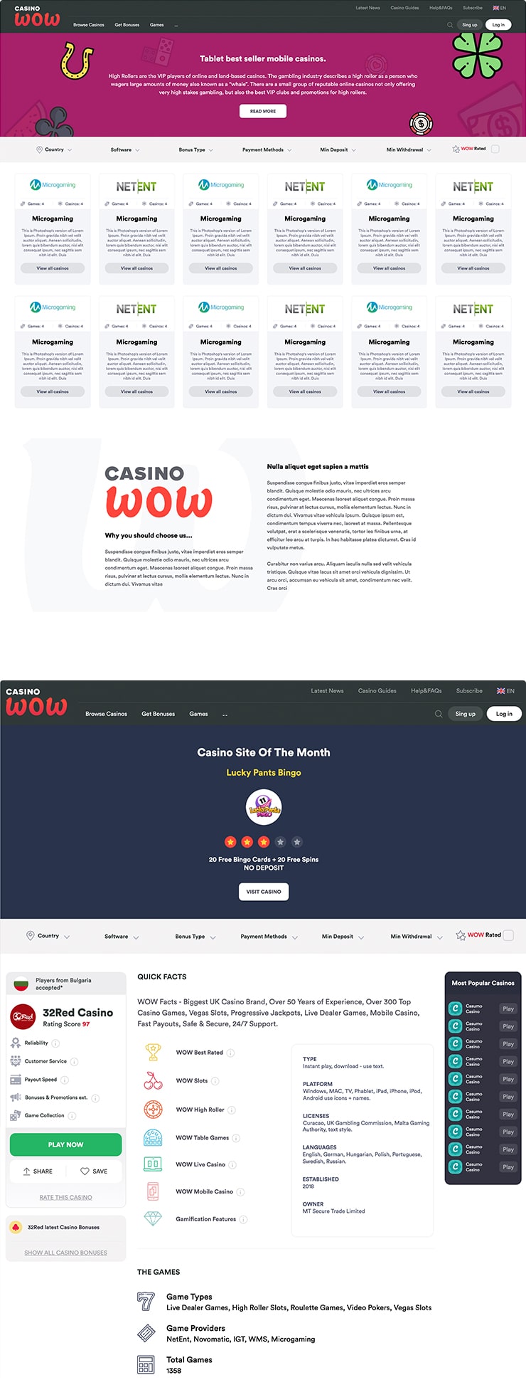 CasinoWow.com is a new and modern casino affiliate website that helps beginners and experienced players to find the right online casino to play at. At CasinoWow you can also find a wide selection of slots that can be played for free directly on the site. Last, but not least – here we’ve developed an easy to use user account system where users can easily review casinos, slots, software providers and share their experience. Similar to most social networks here you can follow other users, brands or providers. Wow Users can share their winning screenshots and videos. Also they can ask for recommendations. With this said – CasinoWow is expected to be the most advanced gambling social network. Behind the funny design and modern layout is staying a powerful custom CMS written on PHP.