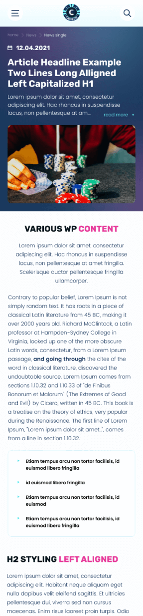 Web design and development of multi-language casino affiliate website.