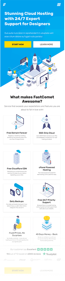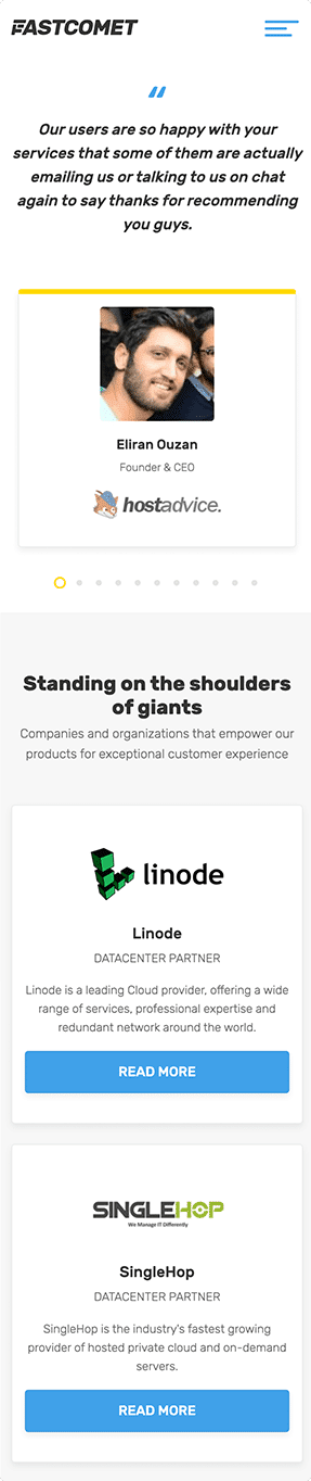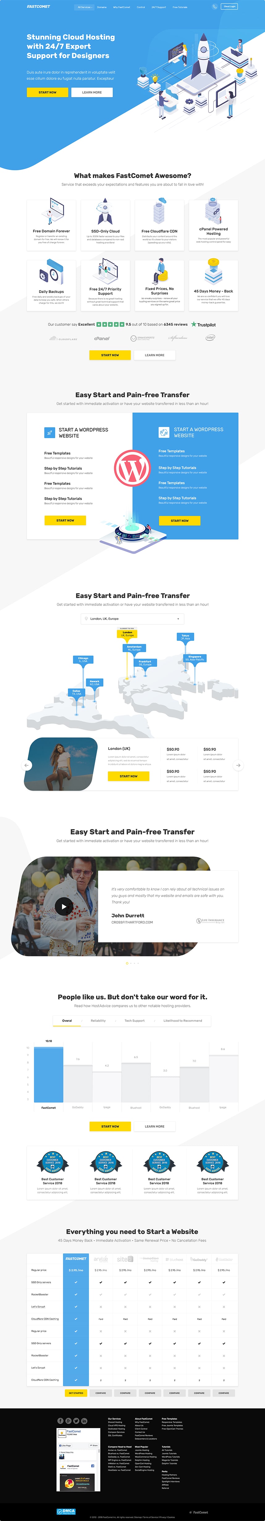 FastComet is leading web hosting provider and our very special partner. We’ve fully designed their corporate identity and website. We’ve also developed fully responsive front-end version optimized for all devices and passed google speed checks. Our web development team created custom back-end (php based) for content management purposes. The website is also integrated with 3rd part services for domain name search, customer portals and billing section. We’ve also designed many sales pages for special occasions & promotions. If you’re willing to host your website at super-fast cloud or dedicated server – visit fastcomet.com.
