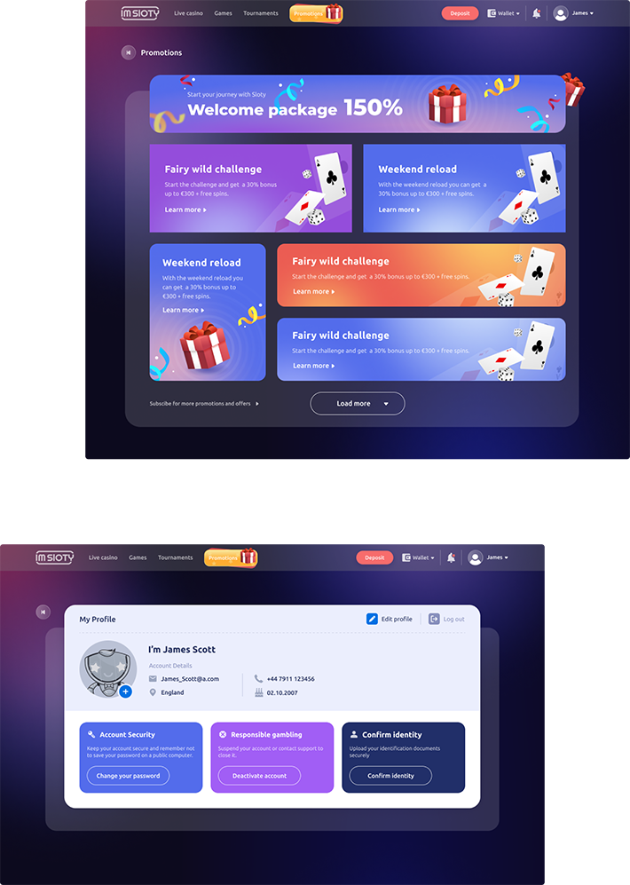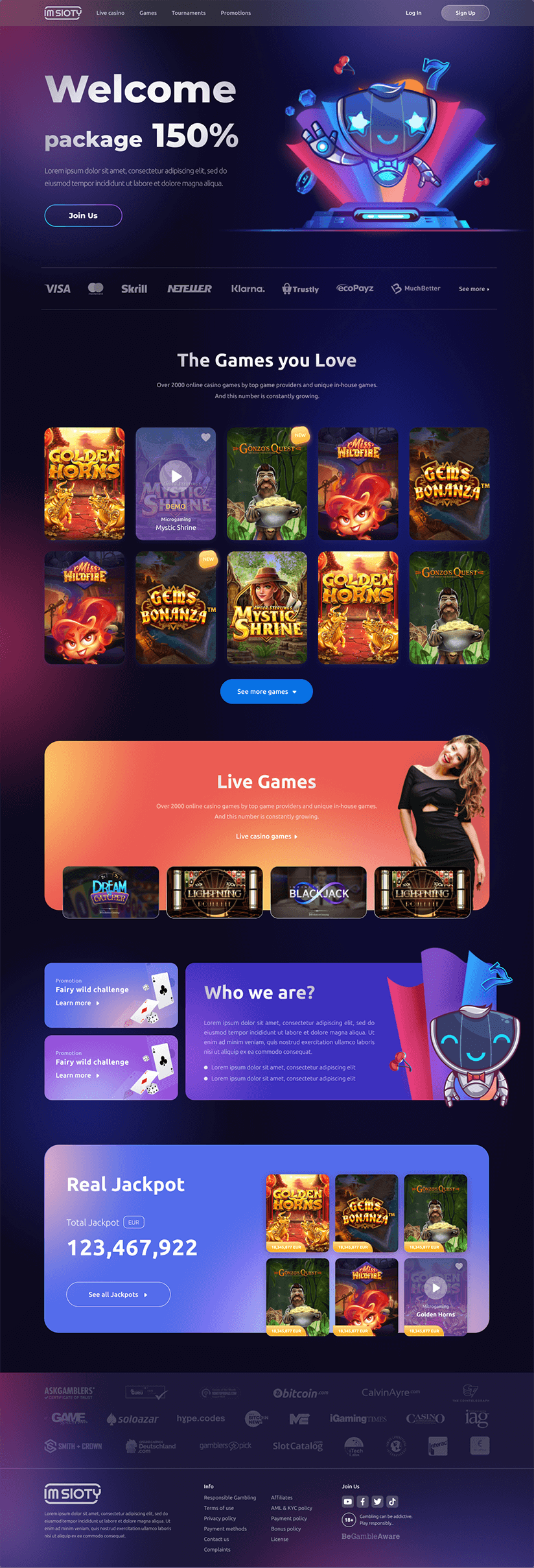 I Am Sloty is a brand new online casino, launched in 2021. We had the pleasure to work on it’s branding concept, illustrations, animations and front-end development. The challenge here was to create a friendly & welcoming UI/UX and a cute character that will represent the brand across the site.