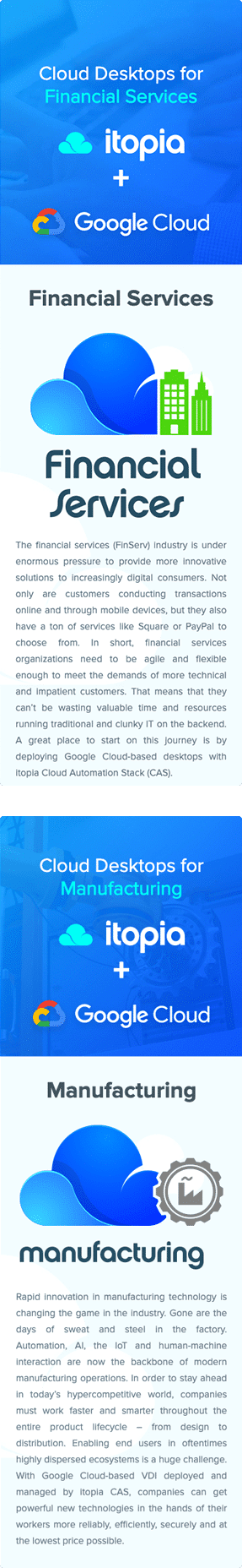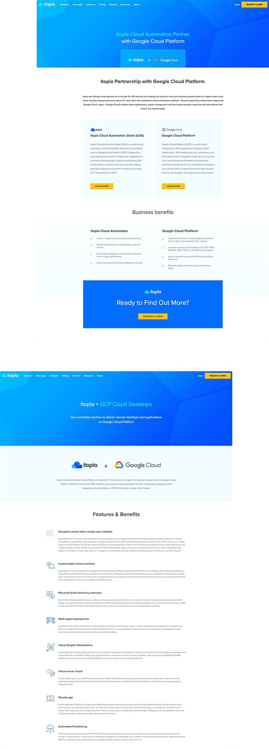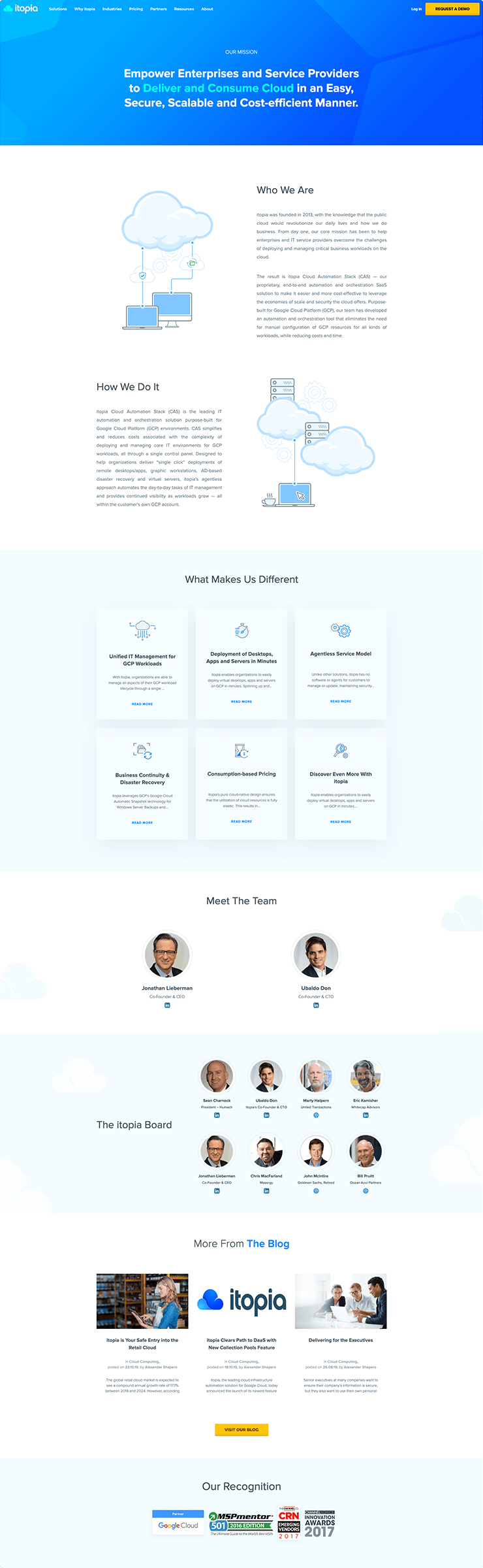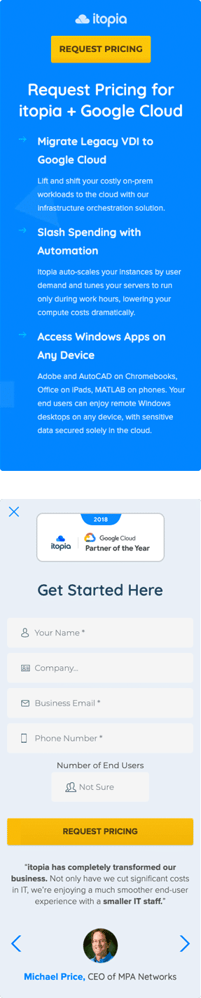 Itopia is premium Google Cloud partner, leading reseller of Cloud Desktop services in Australia and our long-term customer. We were involved in the entire process of designing and developing their marketing website over the years. The site is driven by WordPress and their theme is fully responsive.