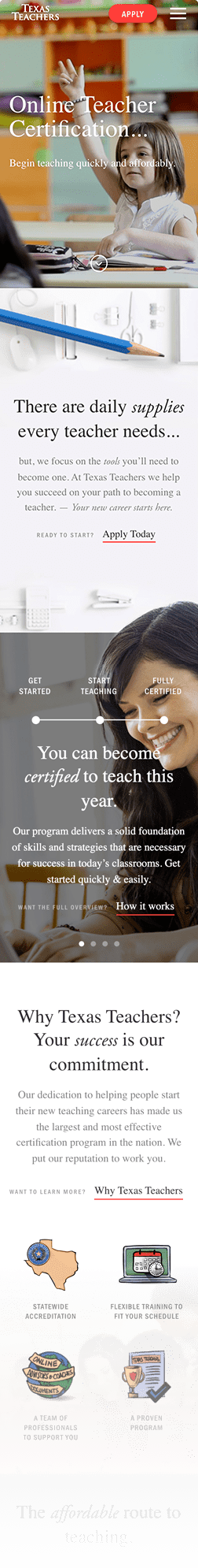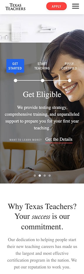 E-legance & Fantasy were hired by texasteachers.org to redesign and improve their website. The result is – stunning web design with smoothly animated front-end desktop/tablet & mobile version. We also developed a custom WordPress theme for CMS purposes. The idea of the website is to give information about teachers certification services that TT offers.
